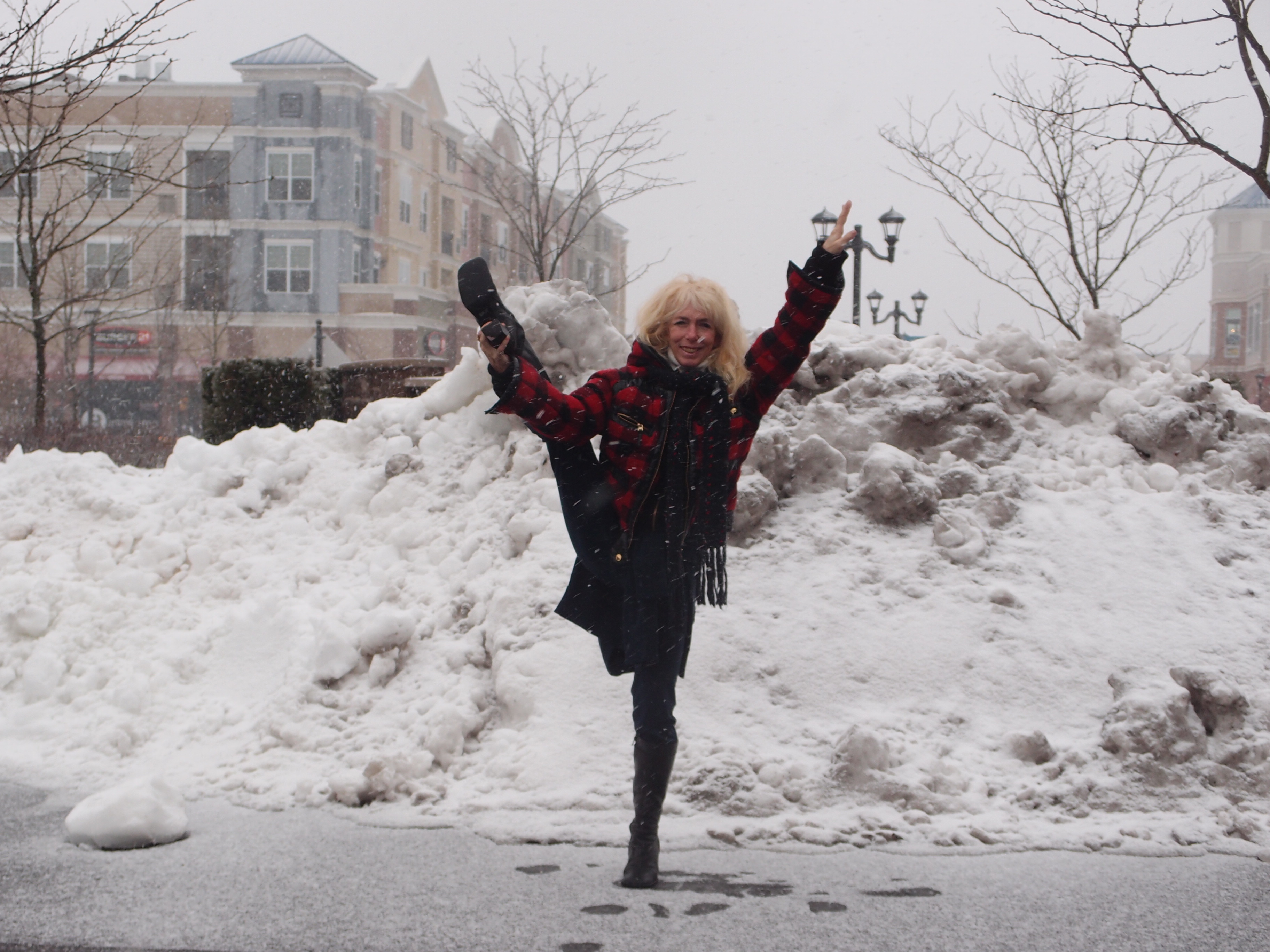 A winter’s snow pose outside the gym.  Yes, I have wanted to do this all season.